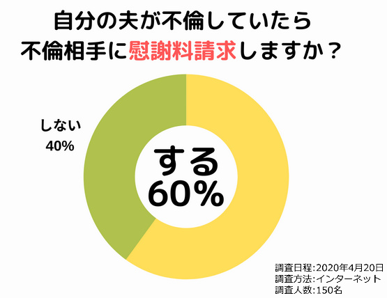 「自分の夫が不倫していたら不倫相手に慰謝料請求する」と答えた女性は全体の60%に及びました。